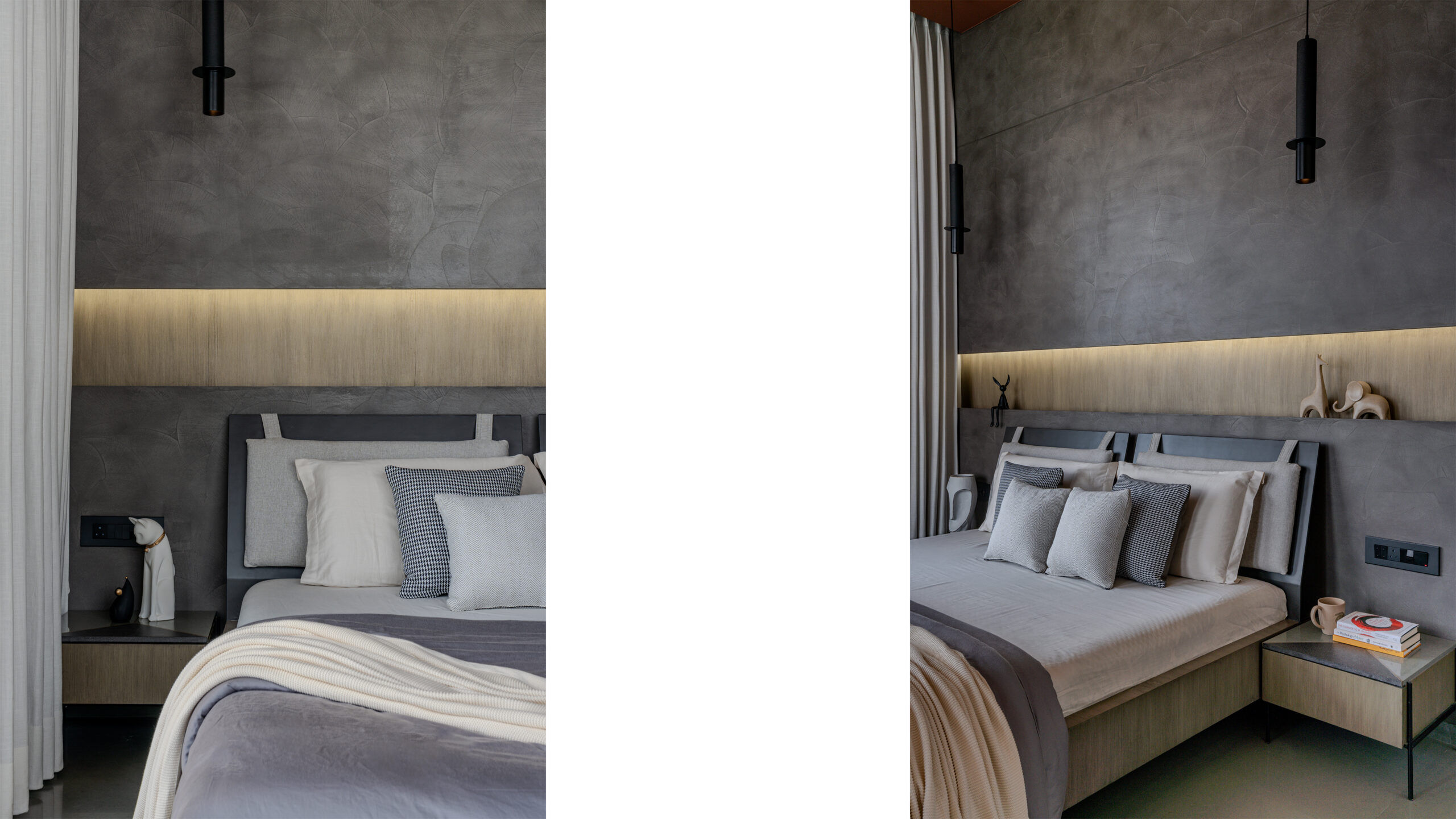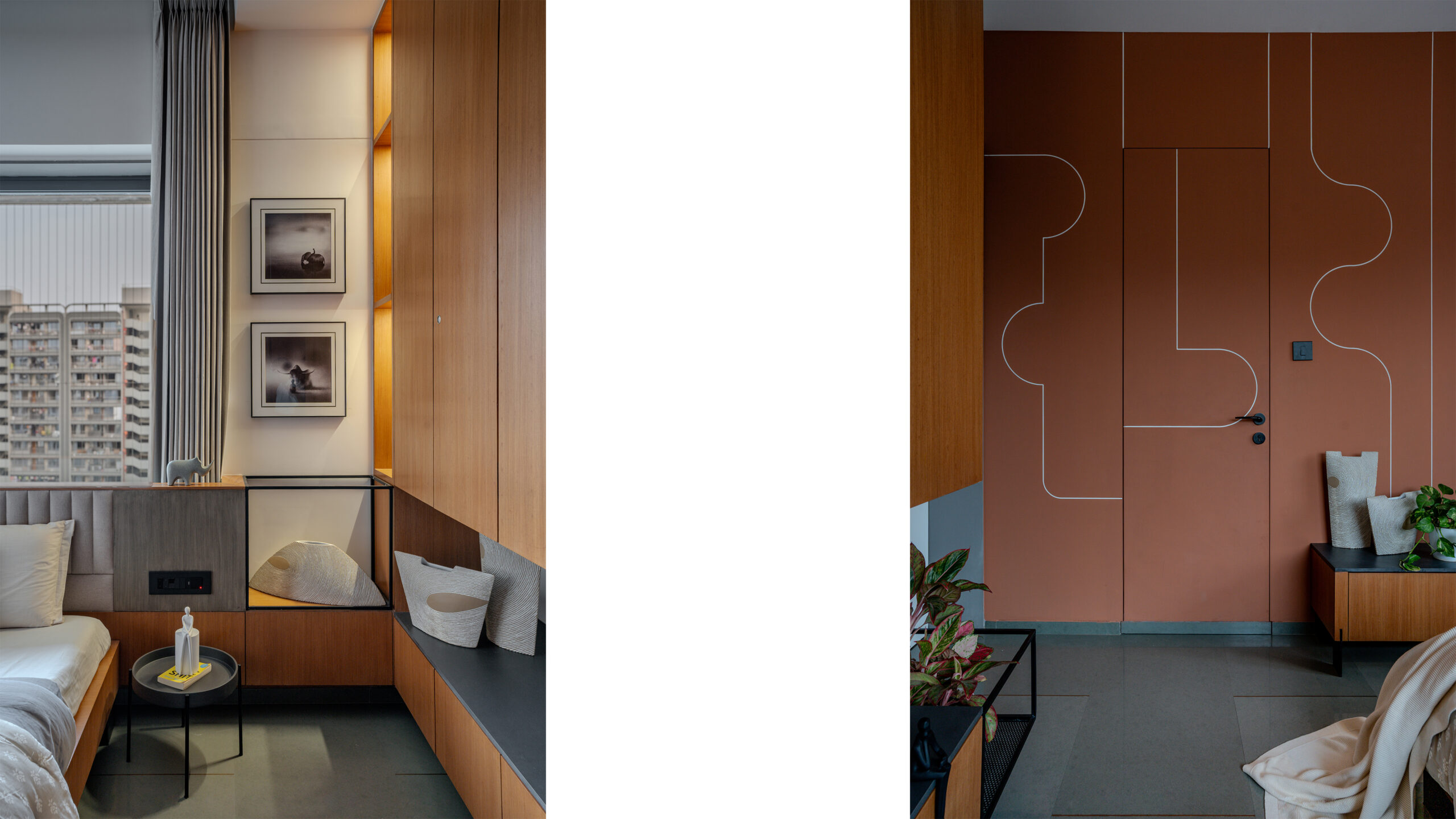 Bedrooms 1 and 2 embrace the river’s vista, each curated with its own distinct texture and palette, yet all tied to the language of materiality and view. The apartment becomes not just a place to live but a canvas of crafted spaces, each imbued with a unique emotional texture, as if shaped by the river’s breath itself.